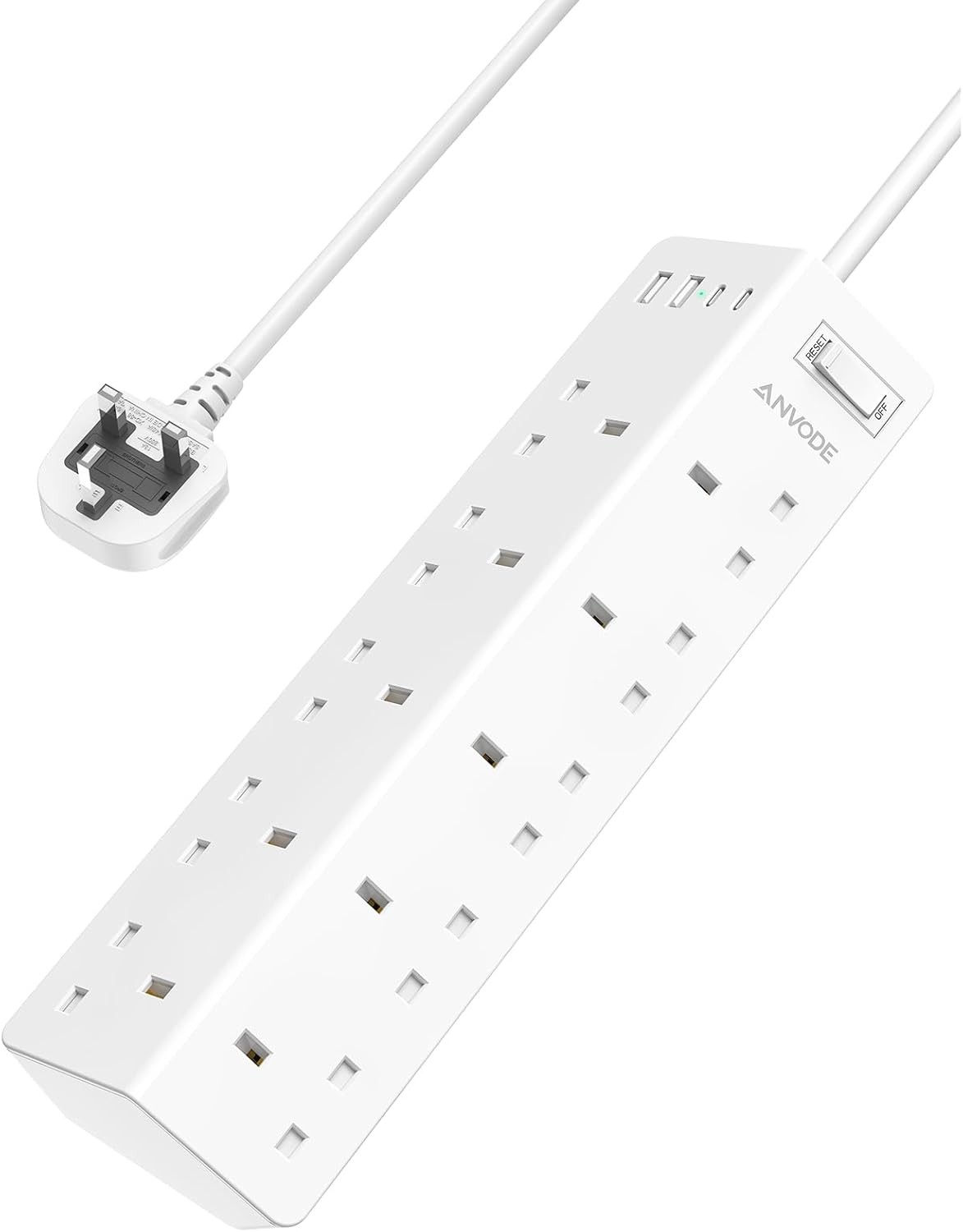10 Way Extension Lead with USB Ports(2 USB C), ANVODE Multi Plug Power Strip wi