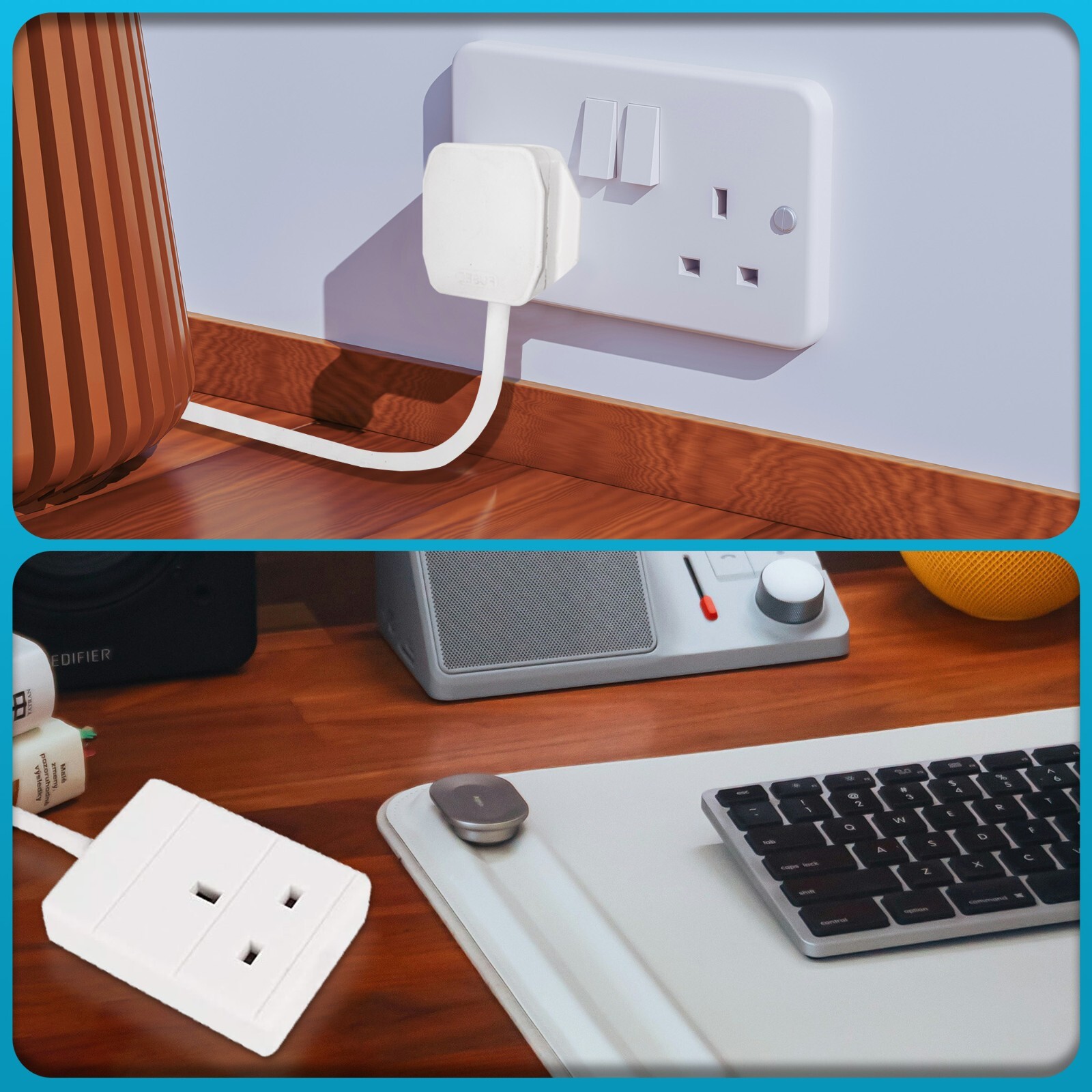 10 Way Gang Tower Mains Extension 2M 13A Lead Cable Socket Adapter Double Sided