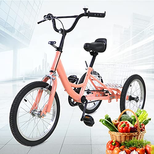 Levkitch 16 inch Tricycle for 7-10 years Children, Single Speed 3-wheel Bicycle Cruise Shopping Trike with Shopping Basket for Shopping Picnic Outdoor Sports