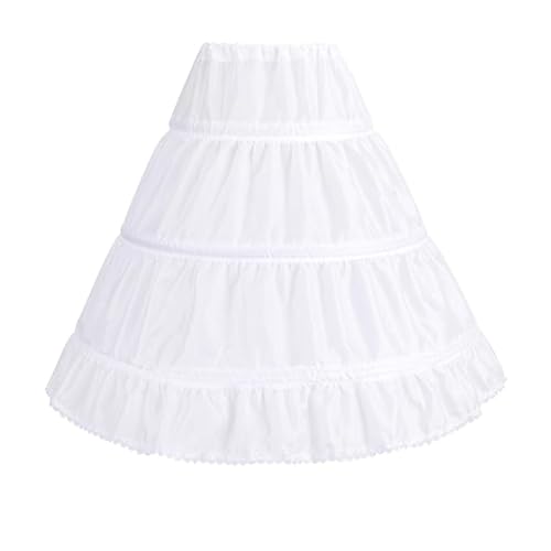 LYSINK Kids Petticoat Single Layer Solid White 3 Hoop Ruffle A-Line Half Slip Underskirt Wedding Accessorie for 5-10T Girls (Ba White, 5_years-10_years)