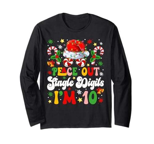 Peace Out Single Digits Im 10 Years Old Merry Christmas Kids Long Sleeve T-Shirt