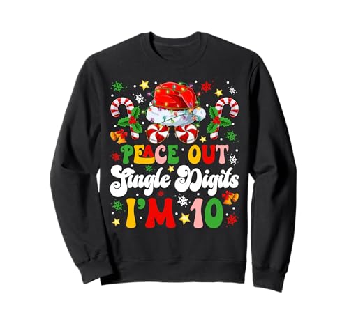 Peace Out Single Digits Im 10 Years Old Merry Christmas Kids Sweatshirt