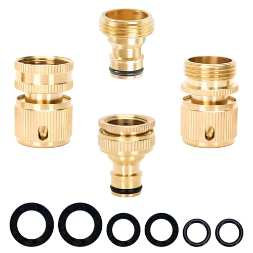 MAGLAUG Expandable Hose Tap Connector Kit, Brass Outside Outdoor Tap Connector Male Watering Nozzle Adapter & 3/4 Double Female Male Expanding Garden Hose Quick Connector for Flexible Hosepipe