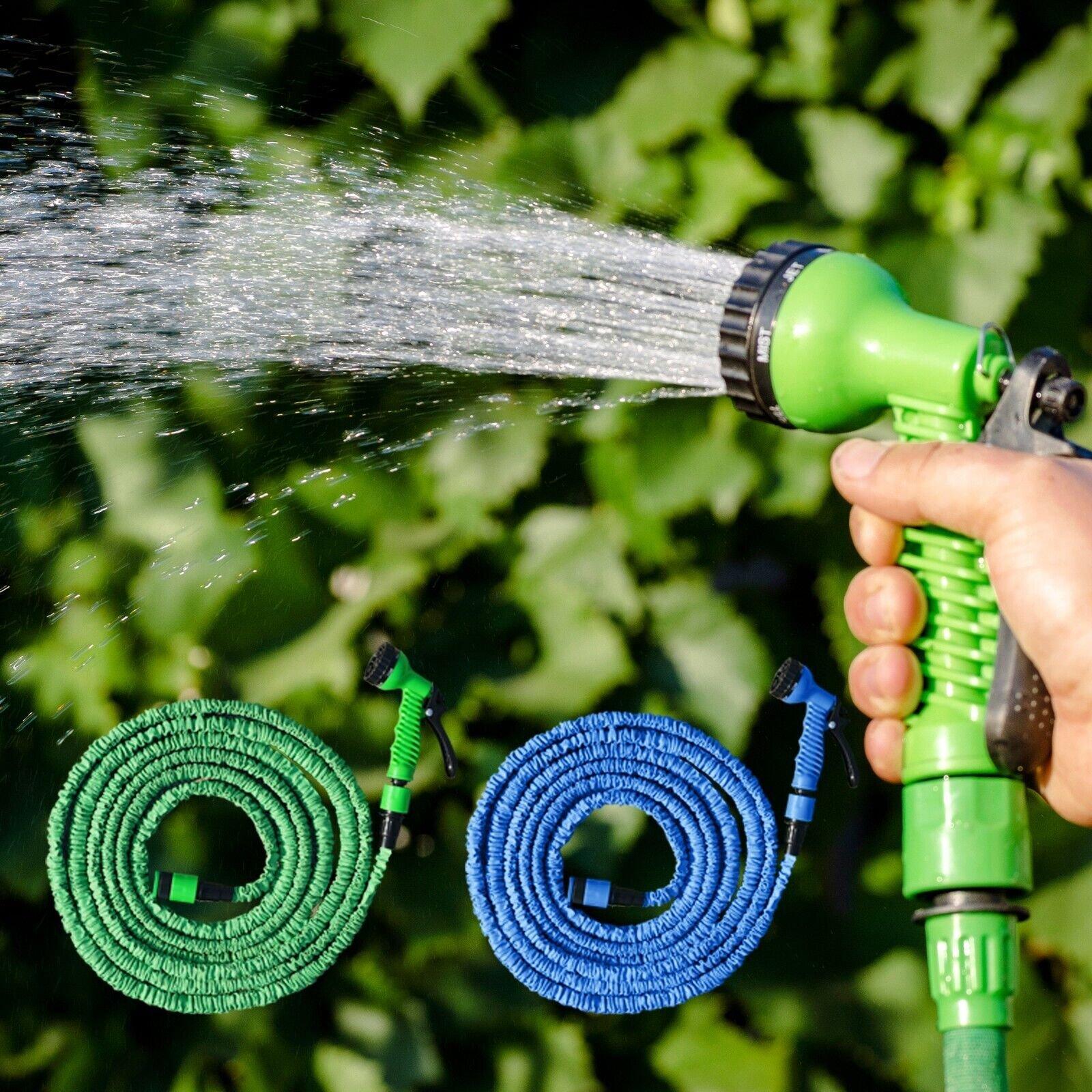 Ram® 50FT Green Expandable Garden Hose Pipe Flexible Garden Lawn Hose With 7 Dial Spray Nozzle