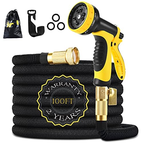 VOUNOT Flexible Garden Hose 100FT Expandable Water Hose Pipe with 10 Modes Water Spray Nozzles, Magic Water Pipe, Black