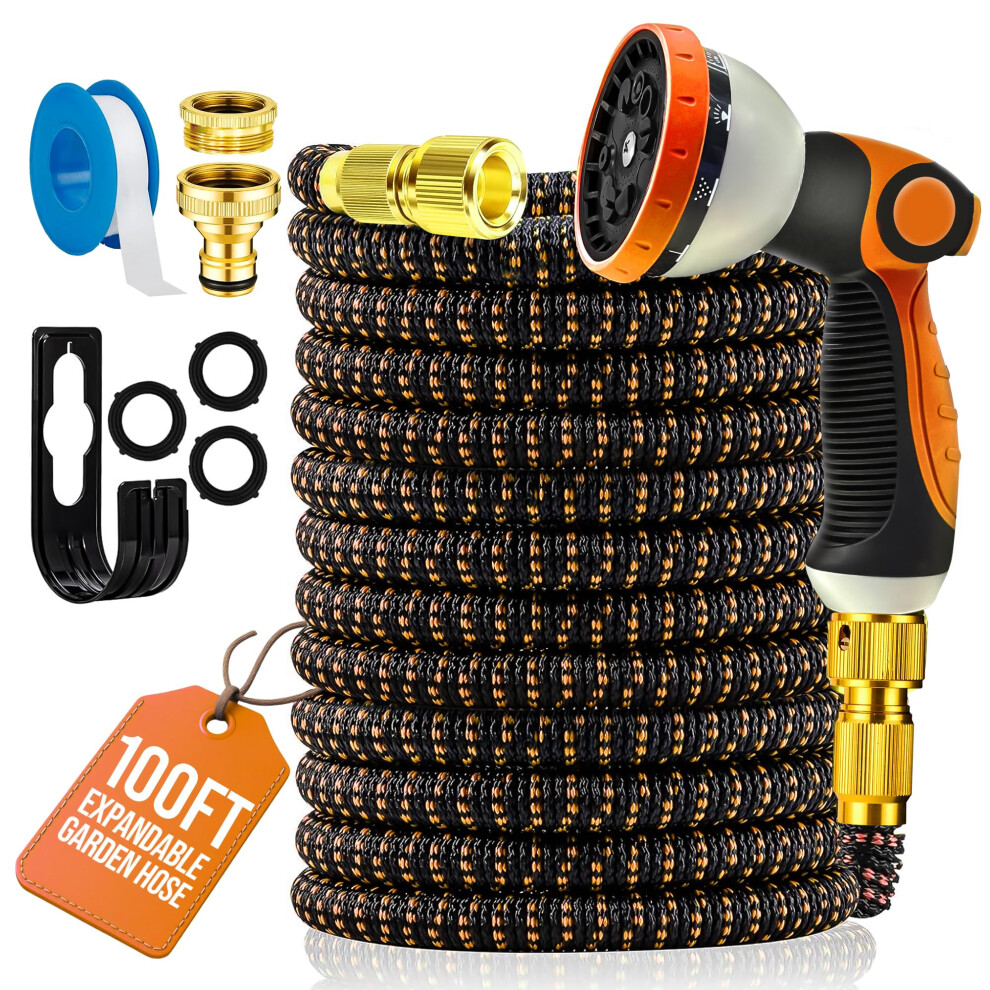100ft Expandable Garden Hose with Durable Brass Fittings, Flexible Lightweight for Gardening and Washing