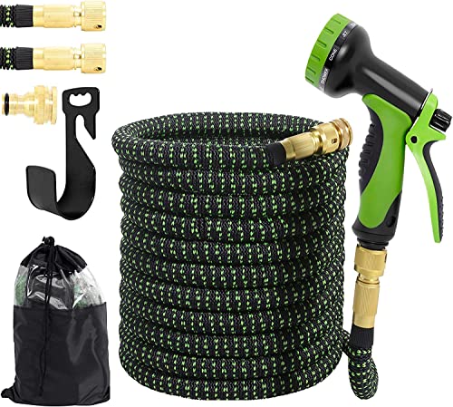 Flexi Hose Expandable Garden Hose - 50FT Heavy Duty Water Hose, Retractable Hose with 2cm Brass Fittings - Expandable Hose Design Includes Spray Nozzle (Green 15 Metres)