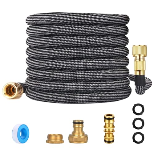 Flexi Hose Expandable Garden Hose - 50FT Heavy Duty Water Hose, Retractable Hose with 2cm Brass Fittings - Expandable Hose Design Includes Spray Nozzle (Black 15 Metres)