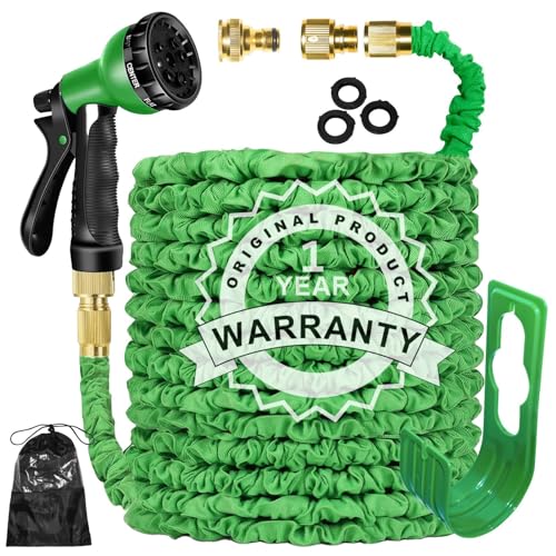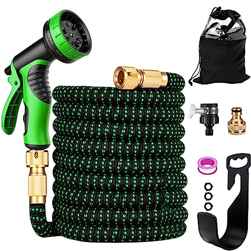 HGLCM 25ft/50ft/75ft/100ft/125ft Expanding Garden Water Hose Pipe with 8 Function Spray Gun 3 Times Expandable Flexible Magic Hose Anti-Leakage Lightweight Easy Storage (Green, 25ft)