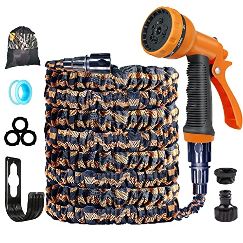 100FT Expandable Garden Hose Pipe Set & 10 Pattern Spray Nozzle Flexible Expanding Magic Hose with 3/4" 1/2" Fittings for Outdoor,Garden,Home