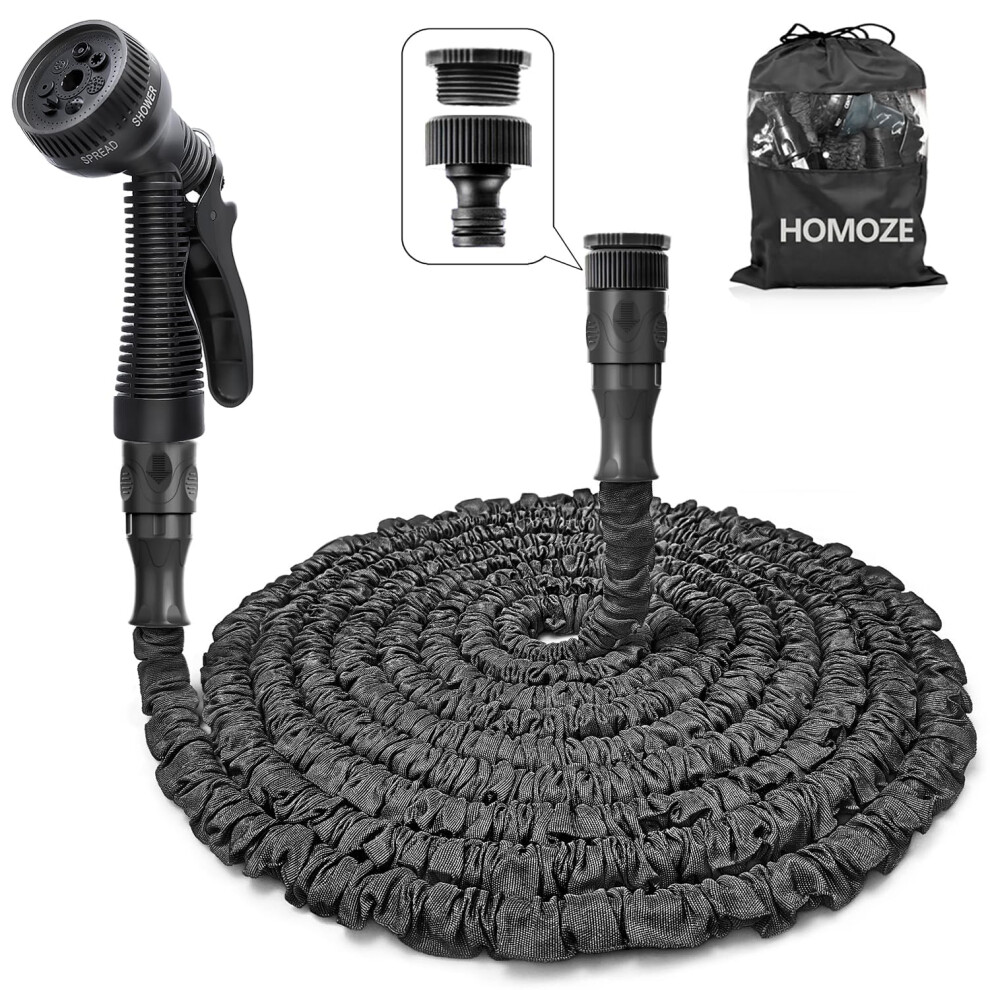 HOMOZE 100ft Garden Hose Pipe Expandable Garden Hose with 3/4", 1/2" Fittings, Anti-Leakage - Flexible Expanding Hose with 10 Function Spray Nozzle (100FT, Black)
