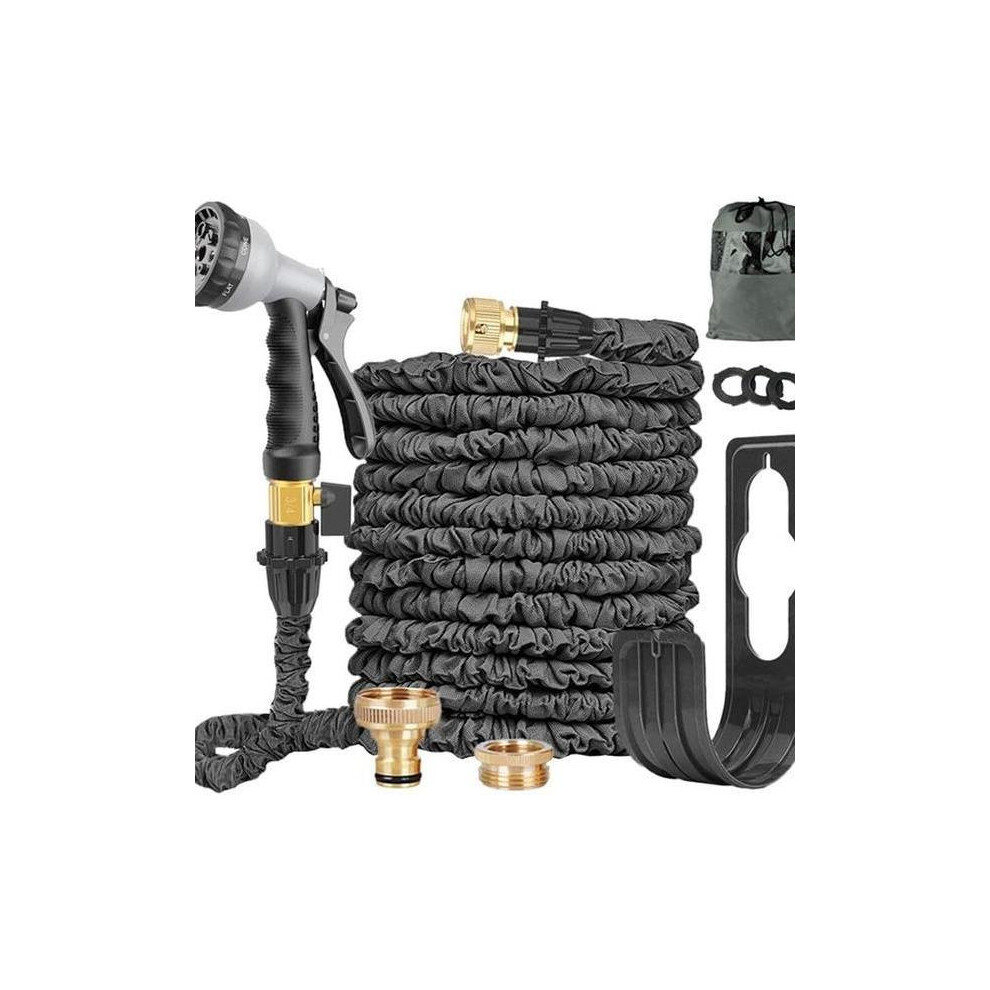 Garden Hose, 100FT Garden Hose Pipe with 10 Modes Spray Gun and Solid Brass Connectors, Flexible Hose Pipe, Expandable Garden Hose, Black 30m