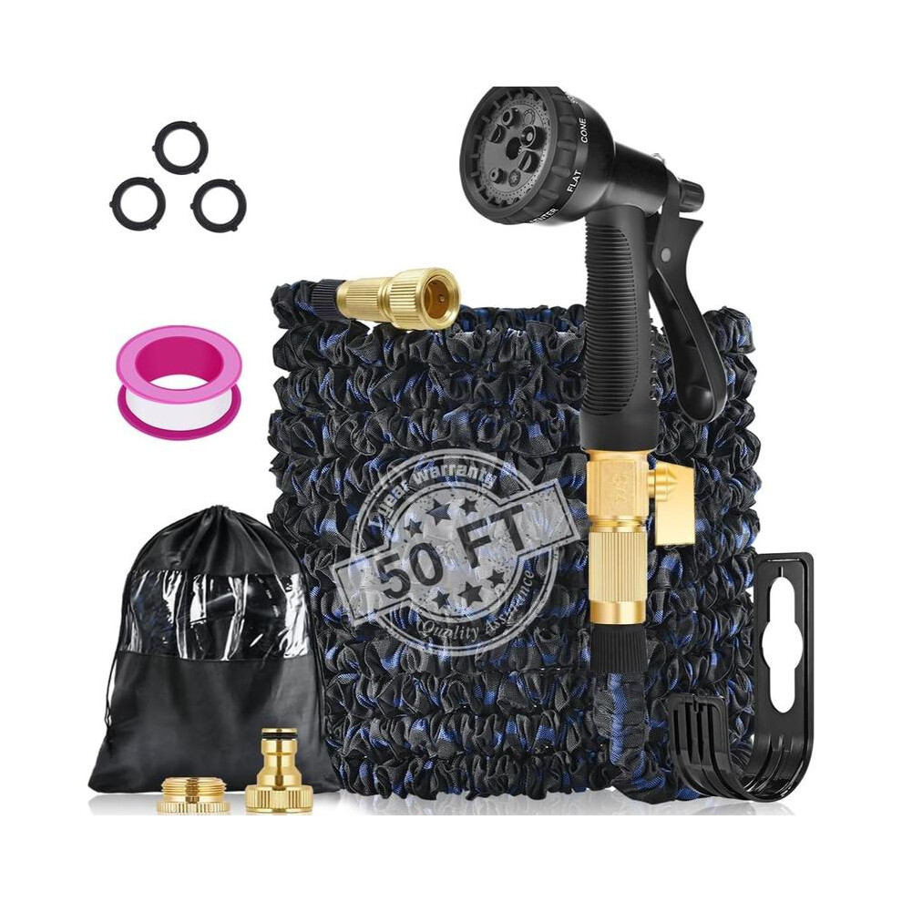 (50ft garden hose 1) 100FT Expandable Garden HosePipe, Flexible Garden Hose with 3 Layer Latex cores,8 Function Spray Hose Nozzle, 3/4" Solid Brass Co