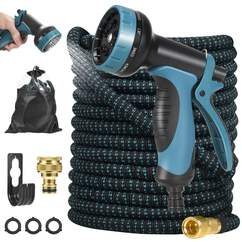 AWXYZ Garden Hose, 25FT/50FT/75FT/100FT/125FT Expanding Hose Pipe with 8 Function Spray Nozzle,3 Times Expandable Magic Hose (Blue, 75FT)