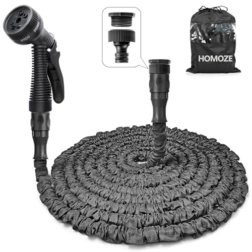 HOMOZE 100ft Garden Hose Pipe Expandable Garden Hose with 3/4", 1/2" Fittings, Anti-Leakage - Flexible Expanding Hose with 7 Function Spray Nozzle (100FT, Black)