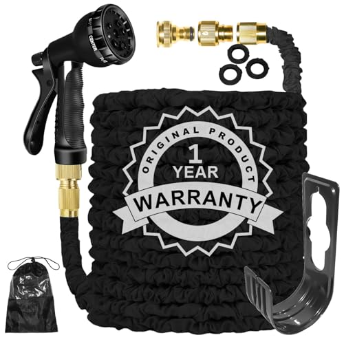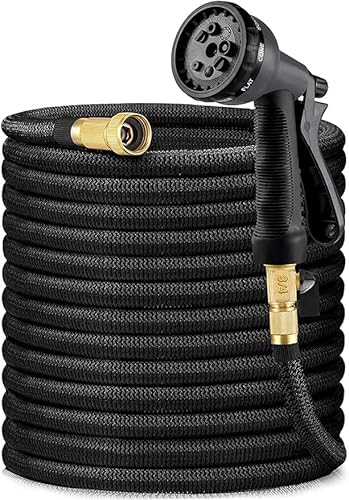 Expandable Garden Hose 100ft, Hosepipes for Garden 30m, Retractable Hose Pipe Flexible Stretch Water Hoses for Home Lawn Car with 8 Function Professional Expanding Hoses (100ft, Black)