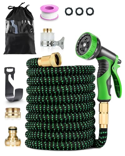 Expandable Garden Hose Pipe 100FT 3 Times Flexible Expanding Magic Lightweight Watering Hose Anti-Leakage with 3/4" 1/2" Solid Brass Fittings 8 Function Spray Nozzle (Green)