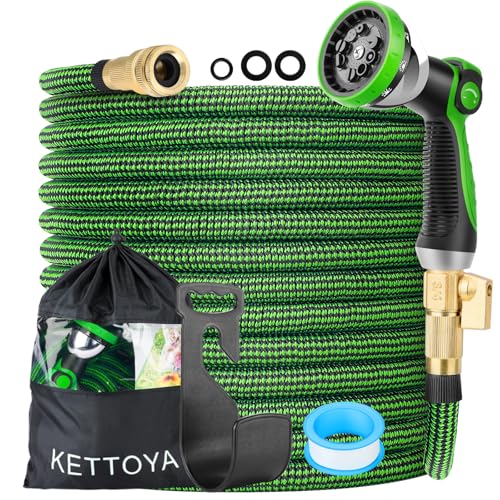 KETTOYA 100FT Expandable Garden Hose, Flexible Water Hose with 10-Pattern Spray Nozzle, Leak-Proof Retractable Heavy Duty Hose Pipe, 4-Layer Latex Core, Durable 3750D, Male Valve Connector, Kink-Free