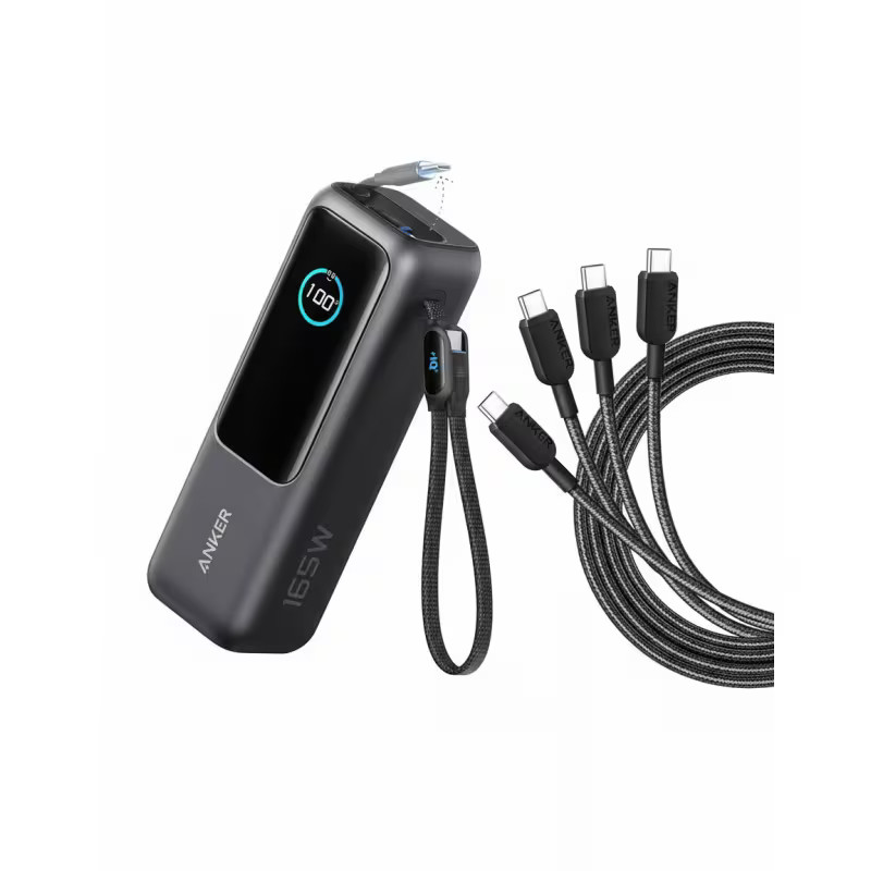 Anker Laptop Power Bank, 25,000mAh Portable Charger with Triple 100W USB-C Ports for Multi-Device Charging, Built-In and Retractable Cables, For iPhone 16/15 Series, Samsung (Charger not included)