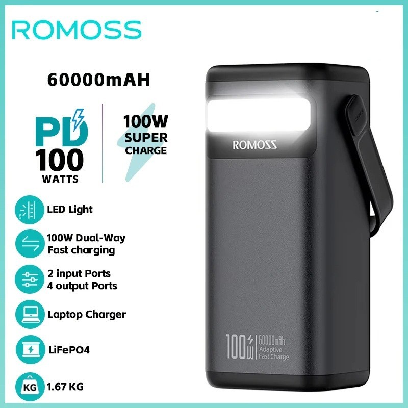 ROMOSS 100W Power Bank with LED & Handle LiFePO4 60000mAh Camping Power Station