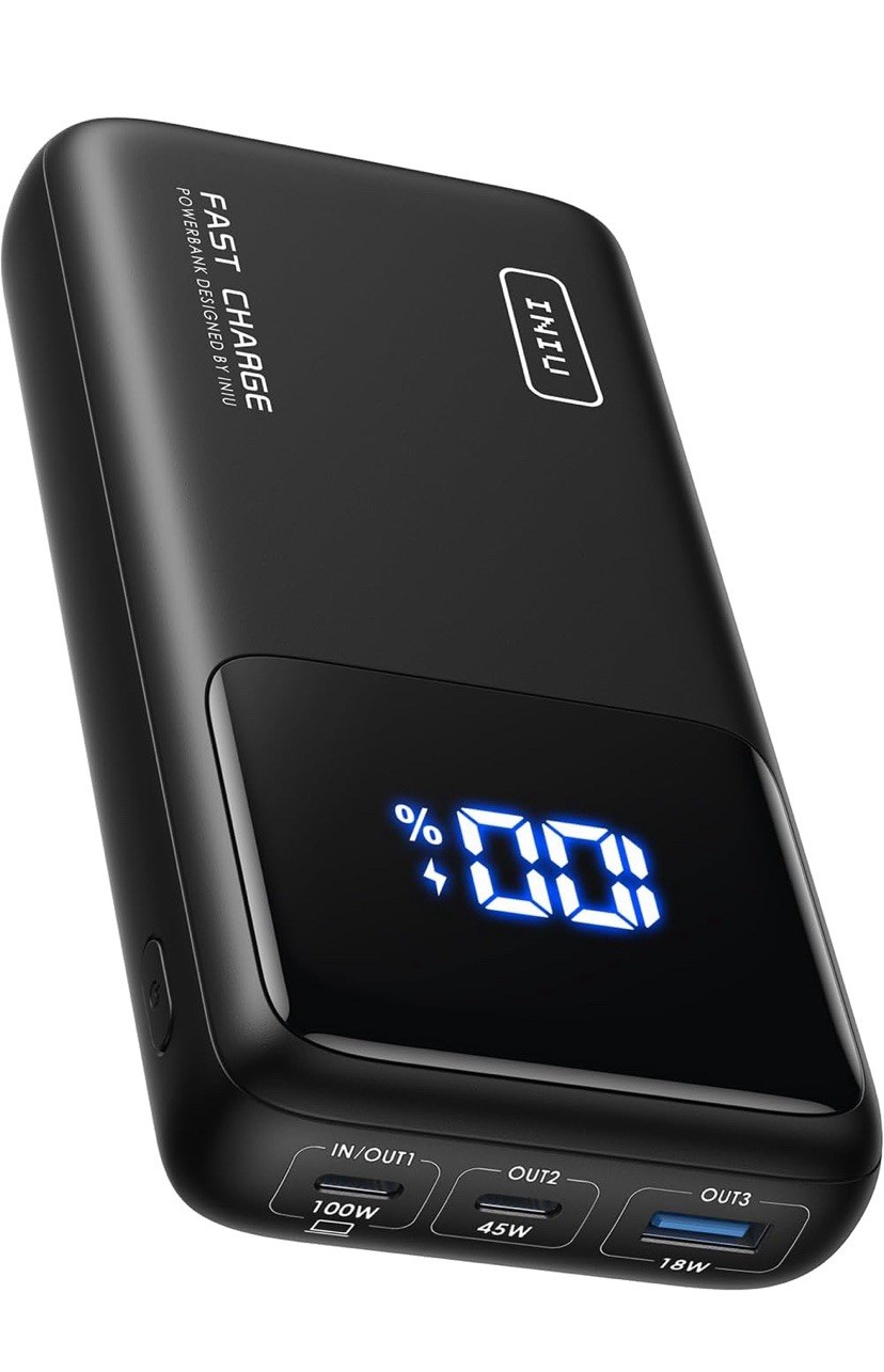INIU 100W 25000mAh Portable Charger for Laptop & Phone, Mini Power Bank with PD QC Fast Charging (USB-C in/Out) - High Capacity Electronics Battery Pack for iPad, Samsung, Travel, Camping, Hiking