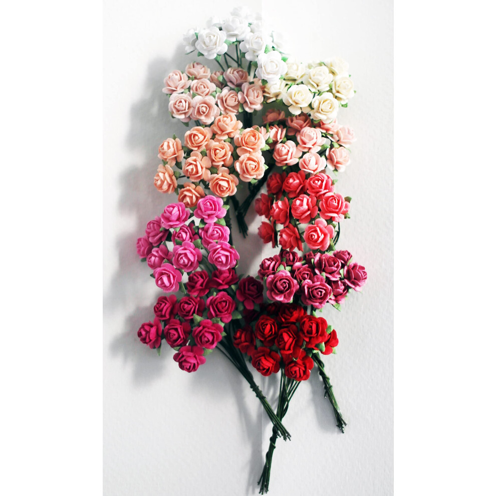 100 paper flowers 10mm mini roses artificial crafts rose small floral craft supply for wedding and tiny doll house scrapbook card scrapbooking