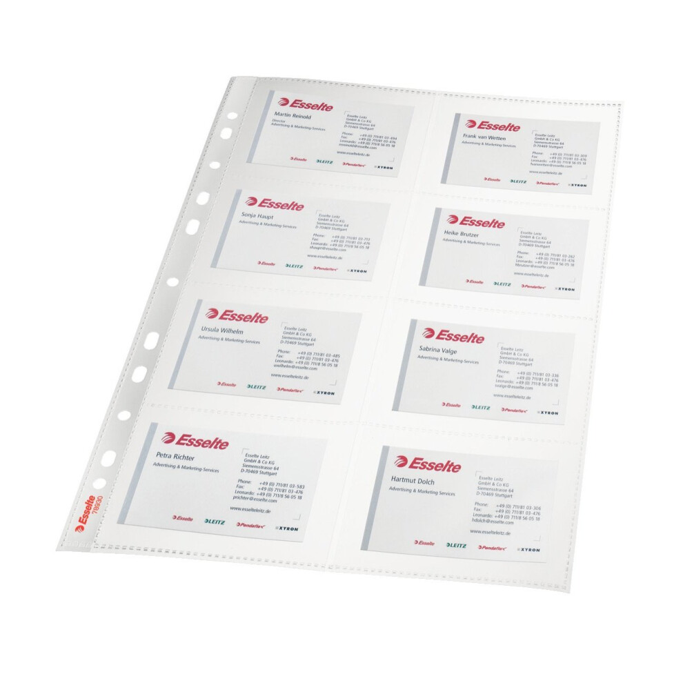 Esselte 78930 – For 16 Cards Smooth A4 105 micron Polypropylene Punched Pockets – Transparent (Pack of 10