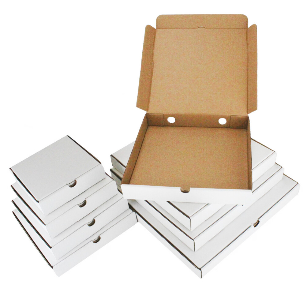 10 x 10" (10.5 x 10.5 x 1.5") White Takeaway Style Slim Postage Pizza Boxes