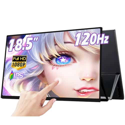 Touchscreen 18.5-Inch 120Hz Portable Monitor, FHD 1080P Laptop Monitor USB-C IPS HDR FreeSync,Second Travel Monitor w/VESA & 180° Adjustable Stand Speakers Ultra-Slim & Lightweight for Phone PC Switch