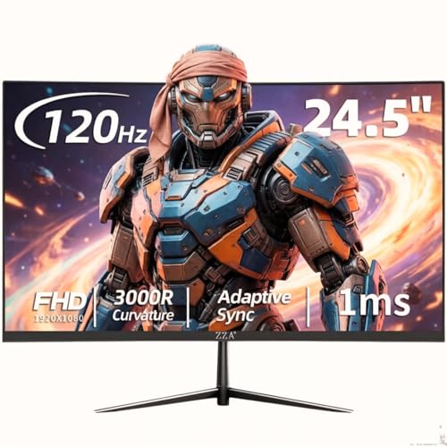 ZZA 24.5" 120Hz Curved Gaming Monitor | FHD 1080P Frameless Design, AMD FreeSync, Low Motion Blur, Eye Care Technology, DisplayPort and HDMI Connectivity, Compatible
