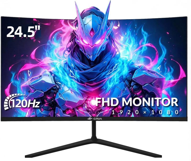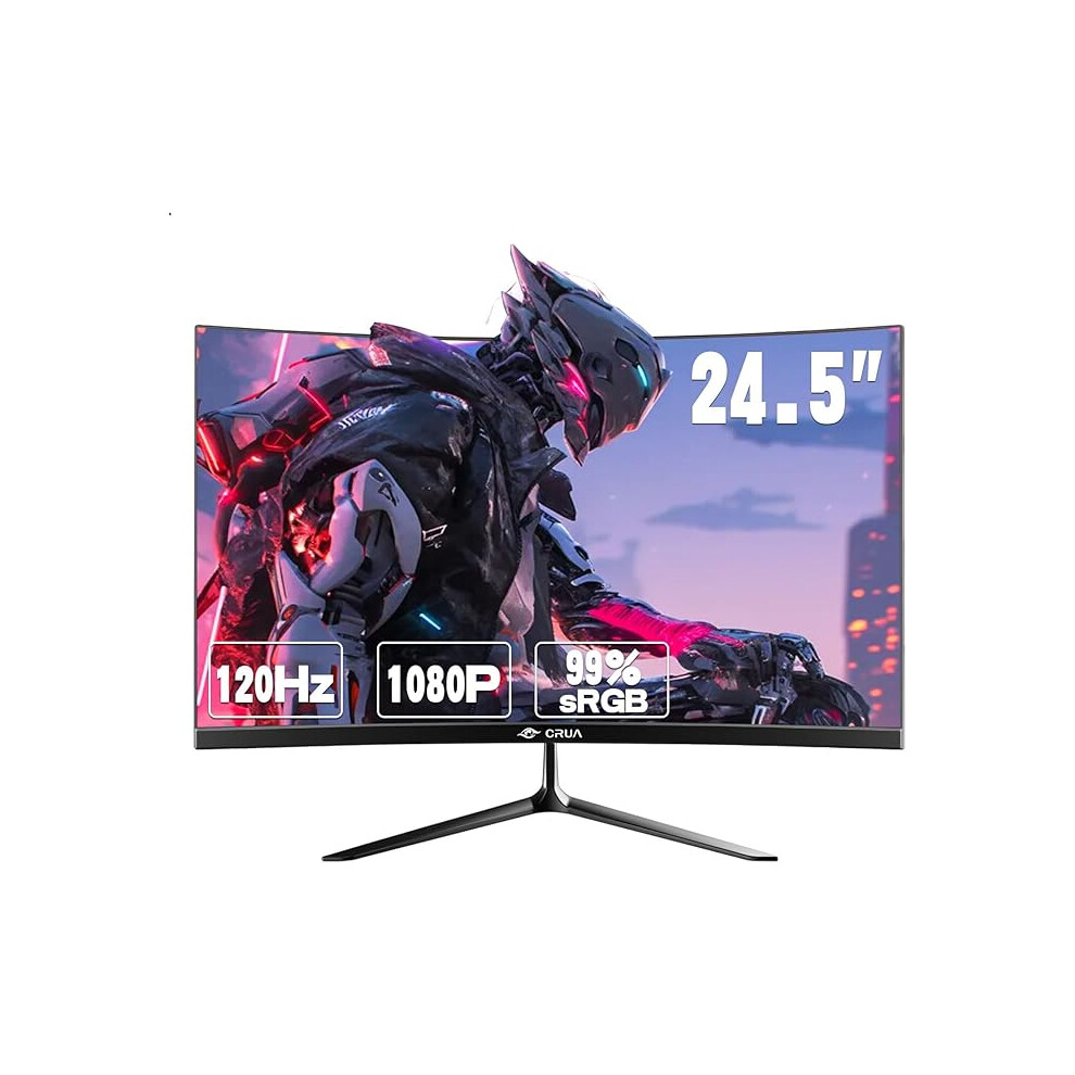 CRUA 24.5 Inch Curved Gaming Monitor 120Hz, Full HD 1080P IPS Display, 1ms MPRT, 3000R Screen, FreeSync, 100% sRGB, HDMI, VESA Mount, Eye Care – PC Monitor for Gaming & Office