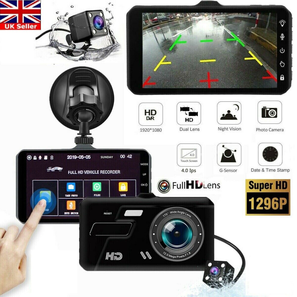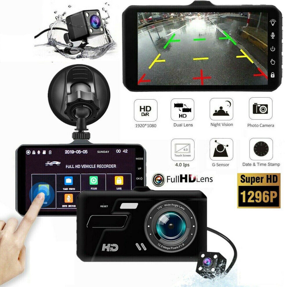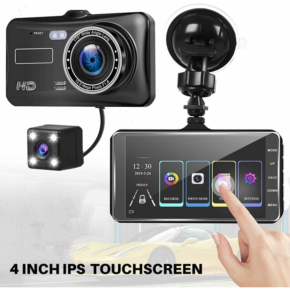 4" In Car Camera Recorder Dual Front and Rear HD 1080P Dash Cam Night Vision UK