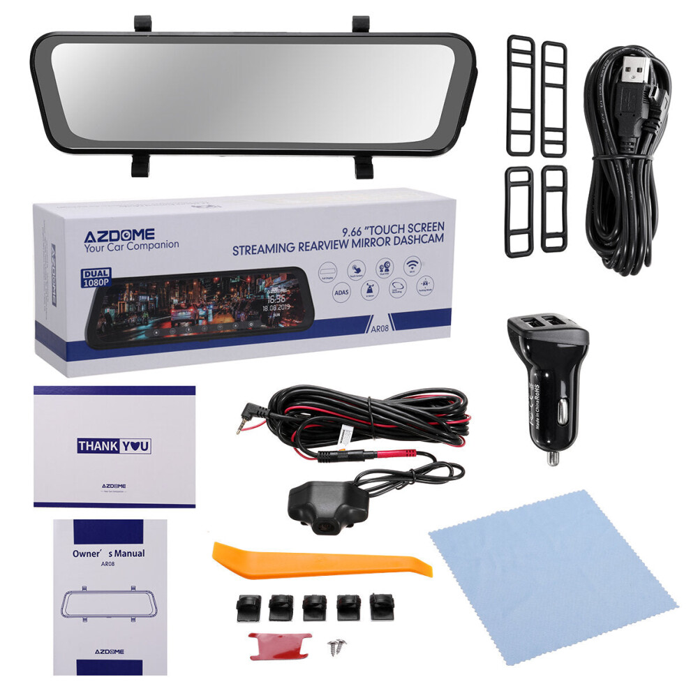 10.26 Inch IPS Touch Screen Rearview Mirror Car Dashboard Wireless Carplay Android Auto Dual lens 1080P Dash Cam Smart Wifi APP GPS Navi Bluetooth Music RAM 2GB ROM 32GB