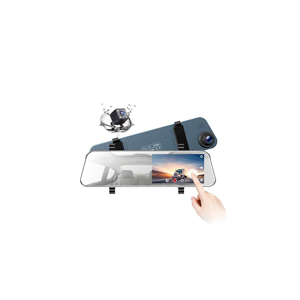 Mirror Dash Cam, Backup Camera 5" LCD Rear View Mirror Camera Ultra-Thin Touch Screen Full HD 1080P Dash Cam Front and Rear Dual Lens with Waterp