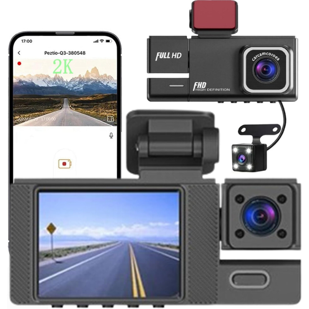 3 Channel Dash Cam Front and Rear Inside,Full HD 1080P Dash Cam for Cars with Super Night Vision Loop Recording G-Sensor APP Control 150Wide Angle 3.