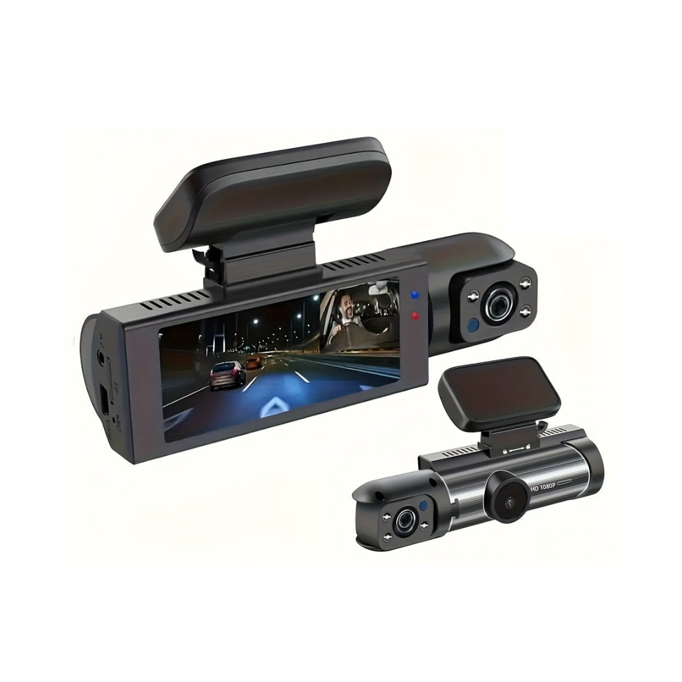 1080P Dual Dash Cam with Front & Cabin Lens, 3-Inch LCD, HDR Night Vision, 170deg/140deg Wide Angles, Loop Recording & G-Sensor, Parking Monitor