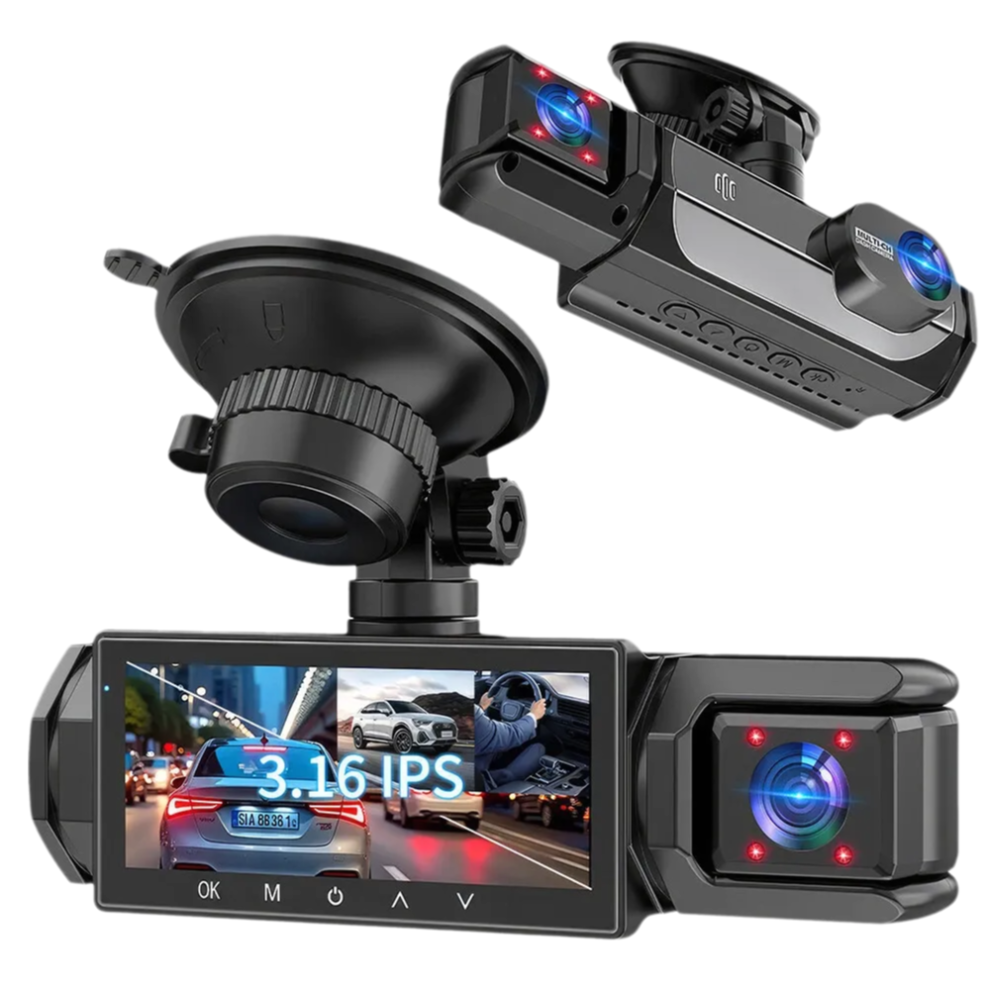 Dash Cam - 3 Channel Dash Cam, 1080P Dash Cam Front Rear Inside, Triple Dash Cam, Car DVR with 170 Wide Angle, G-Sensor, 24Hr Parking, Loop Recordin