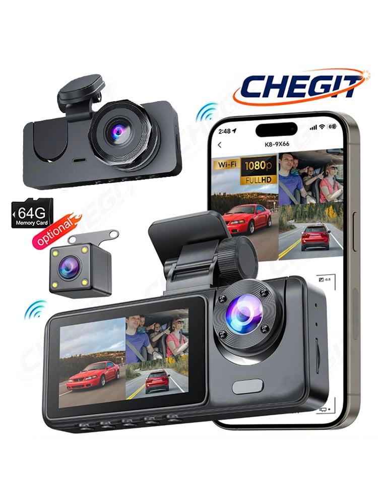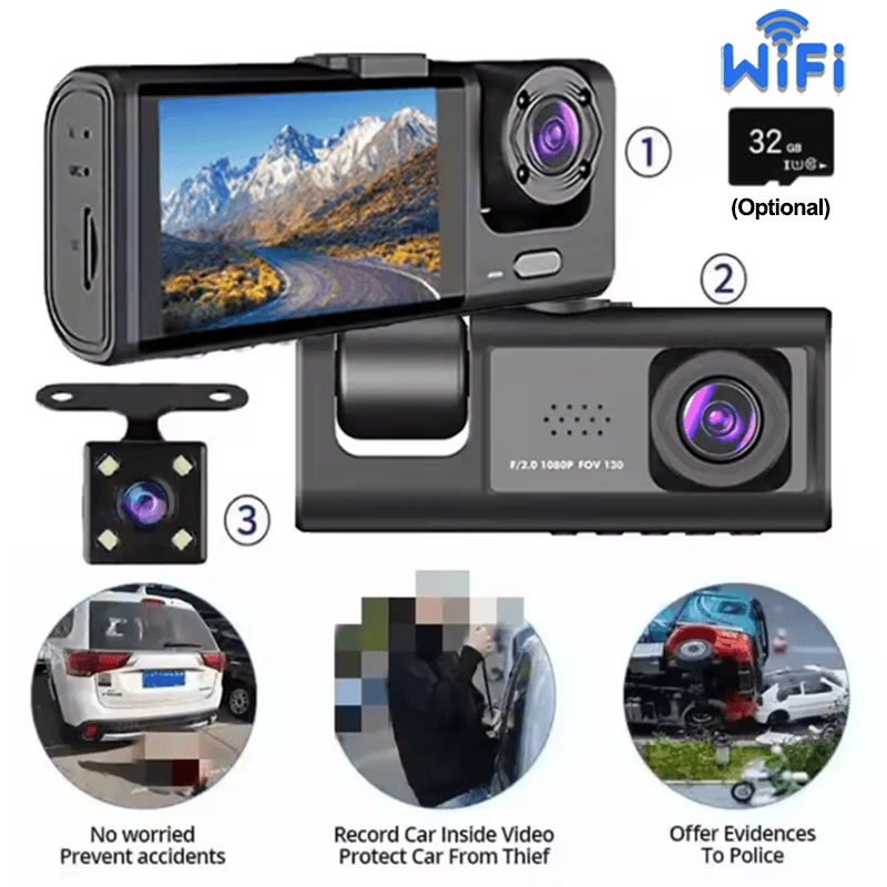 3Channel WIFI APP Car DVR 1080P Dash Cam for Cars Dual Len car recording camera Optional Rear View Camera Car accessory
