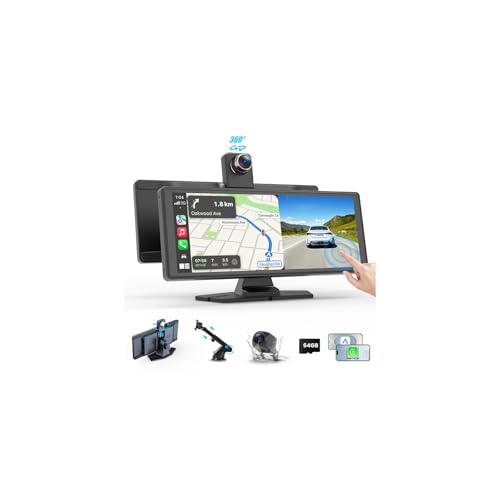 10.26" Wireless CarPlay Screen, LAMA Touch Screen Car Play Android Auto Car Stereo, 360° Rotatable 4K Front and 1080P Rear Dash Cam, Portable Cars Audio with Mirror Link, 64G SD Card, S-iri, AUX