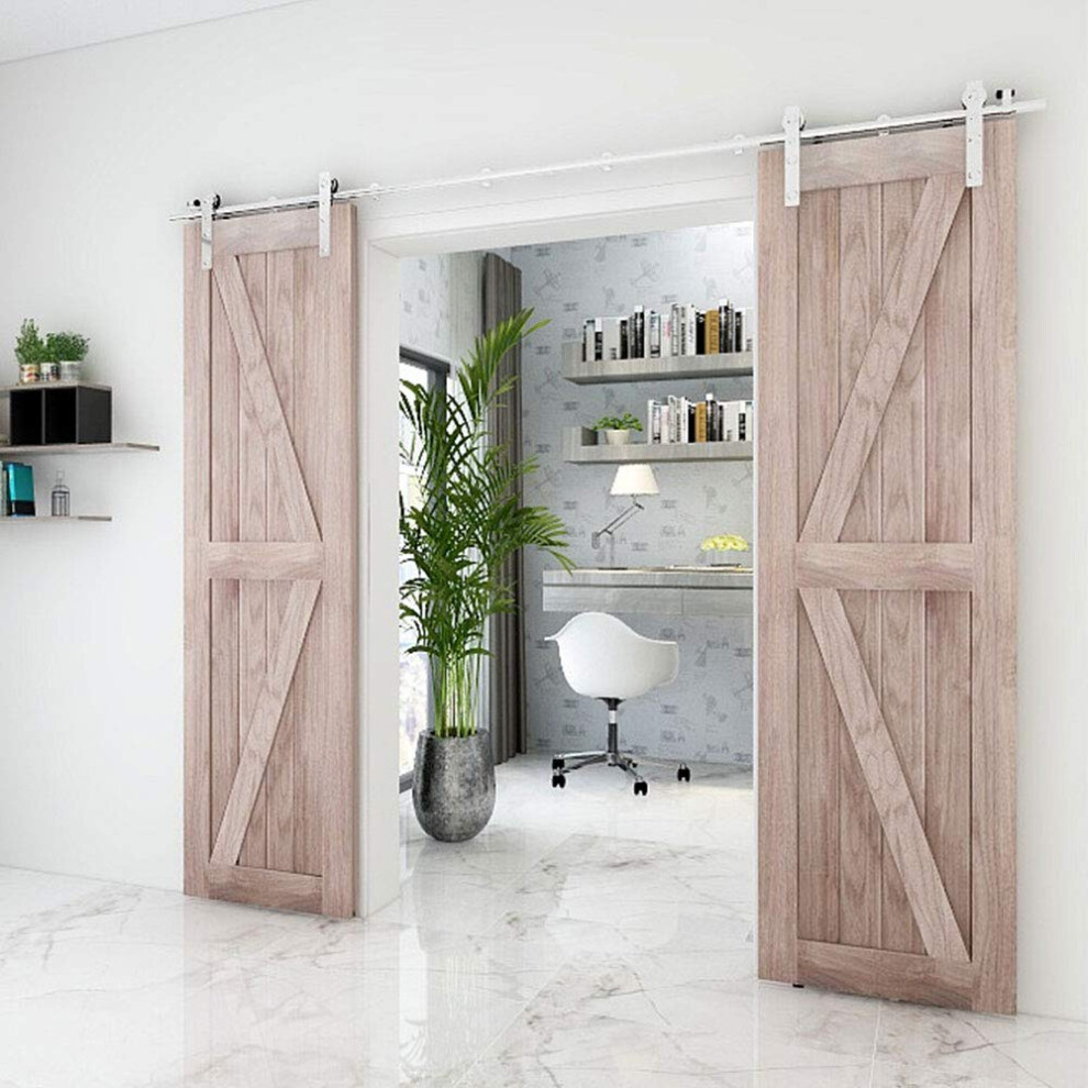 TSMST 10FT Sliding Barn Door Hardware Kit Stainless Steel Heavy Duty Sturdy Barn Door Track for Double Wood Door Slide Smoothly Quietly (I Style)