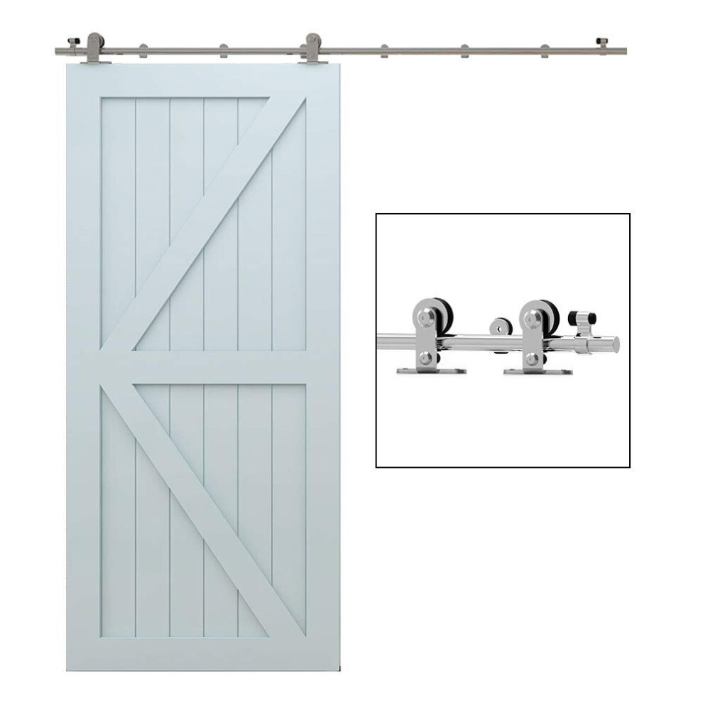 TSMST 10FT Sliding Barn Door Hardware Kit Top Mount Stainless Steel Heavy Duty Sturdy Barn Door Track for Single Wood Door Slide Smoothly Quietly (