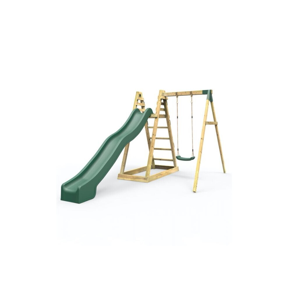 (Free Standing Slide 10ft & Adventure Wall) Rebo Children's Wooden Free Standing 8.7ft Kids Water Slide