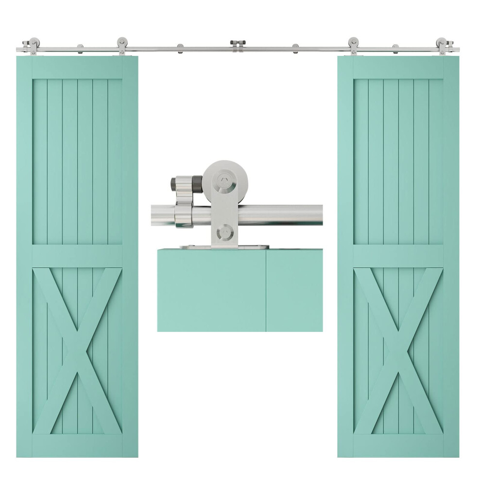 TSMST 10FT Sliding Barn Door Hardware Kit Top Mount Stainless Steel Heavy Duty Sturdy Barn Door Track for Double Wood Door Slide Smoothly Quietly (