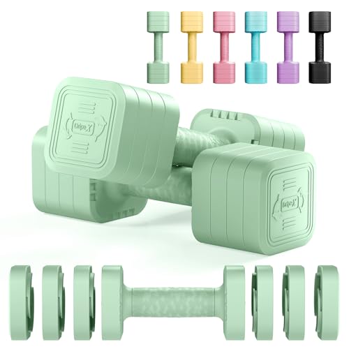 Dripex Adjustable Dumbbells Weight Set 2.5kg 5kg 10kg Dumbbell Pair, 4-in-1 Weight Dumbbells Set Women Men with Non-Slip Handle Home Gym Fitness-Pea Green/5kgX2