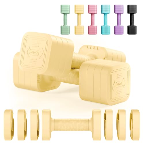 Dripex Adjustable Dumbbells Weight Set 2.5kg 5kg 10kg Dumbbell Pair, 4-in-1 Weight Dumbbells Set Women Men with Non-Slip Handle Home Gym Fitness-Yellow/5kgX2