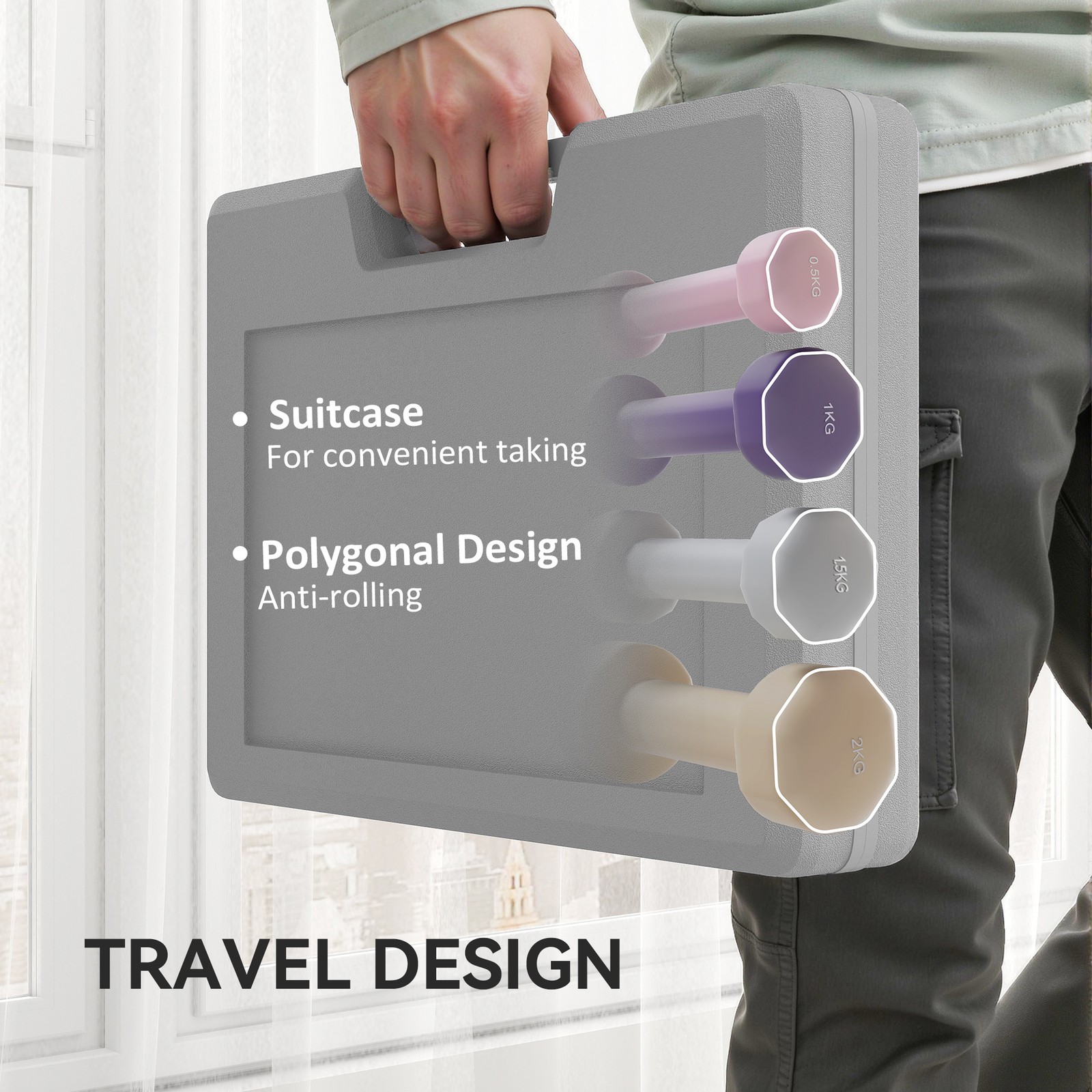 10kg dumbbell set with portable case, unisex home gym weight training handheld dumbbells, available in pink, purple, grey, and brown