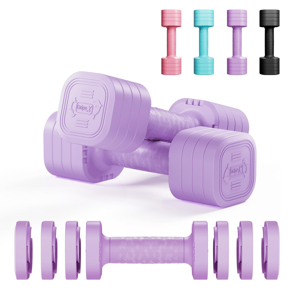 Dripex Adjustable Dumbbells Weight Set 2.5kg 5kg 10kg Dumbbell Pair, 4-in-1 Weight Dumbbells Set Women Men with Non-Slip Handle Home Gym Fitness-5kgX2