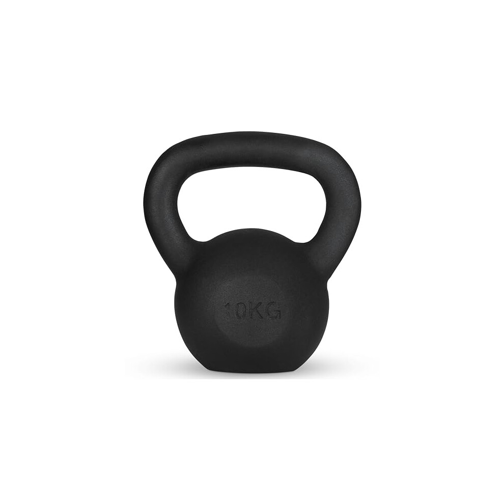 KAKSS Cast Iron Kettlebell 10kg, Black Gym Weights with Smooth Wide Handle and Flat Base, Single Piece Competition Style Kettlebells for Home Gym Equipment and Fitness Equipment for men and women