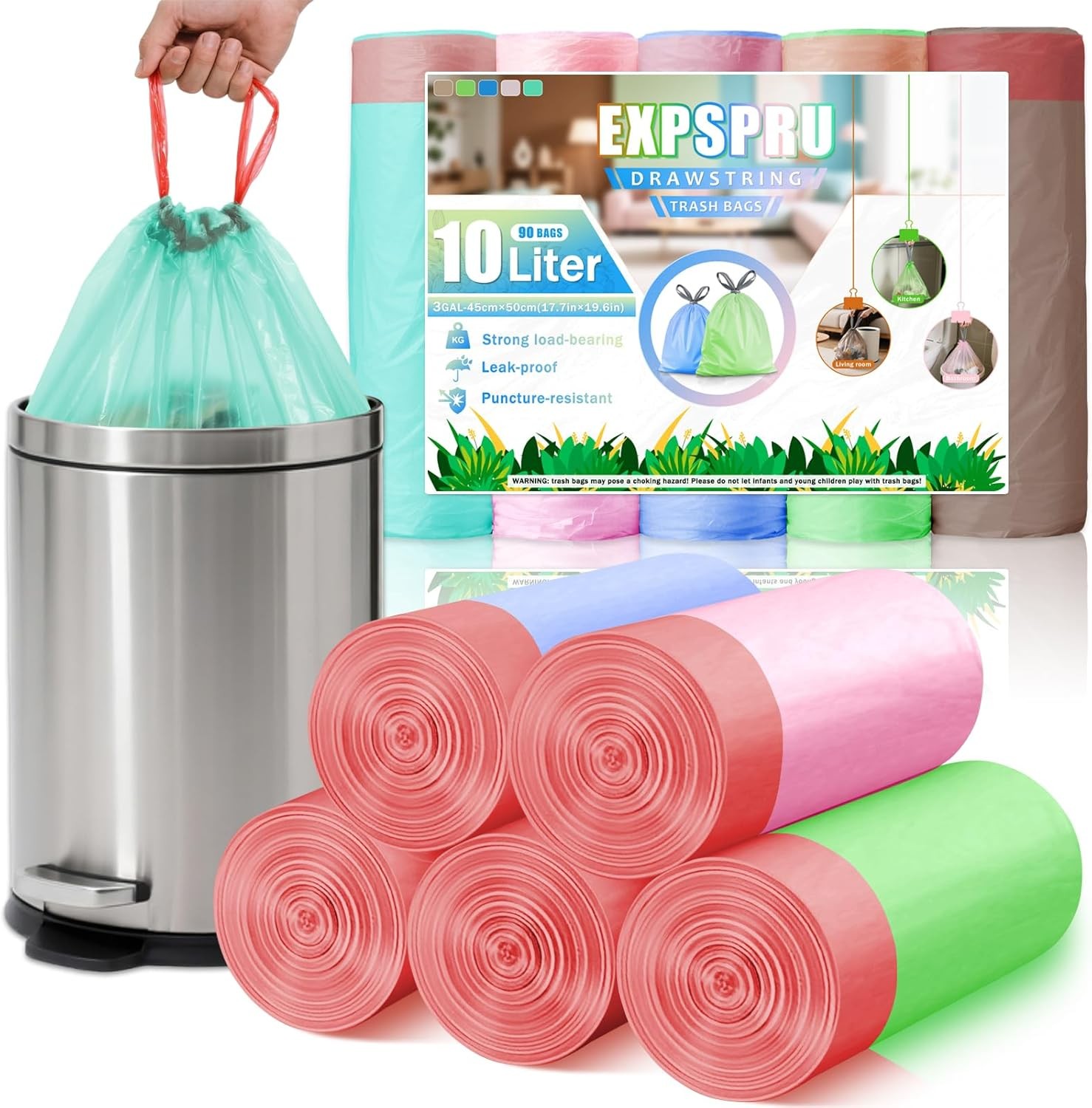 10L Bin Bags Colorful Drawstring Bin Liners Small Bin Bags with Handle Pedal Tr