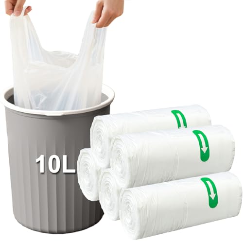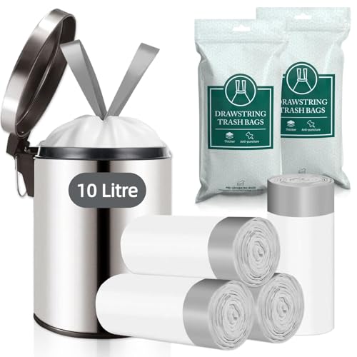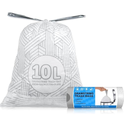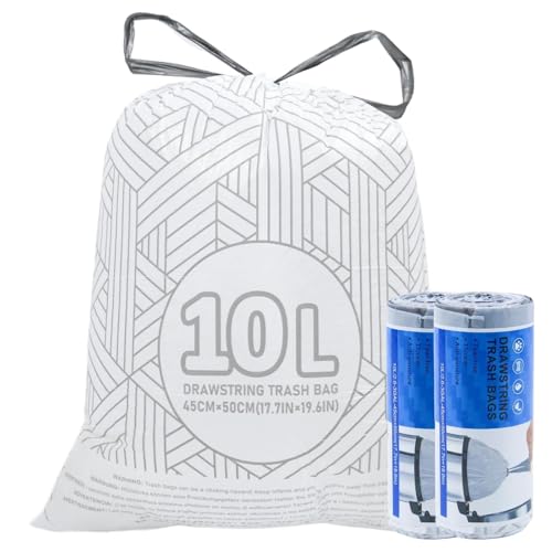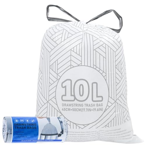 10L Bin Liners Drawstring bin bags with Tie Handle,Small Bin Bags for Bathroom pedal Bin,Office Waste Paper Bin(60 Liners, White)